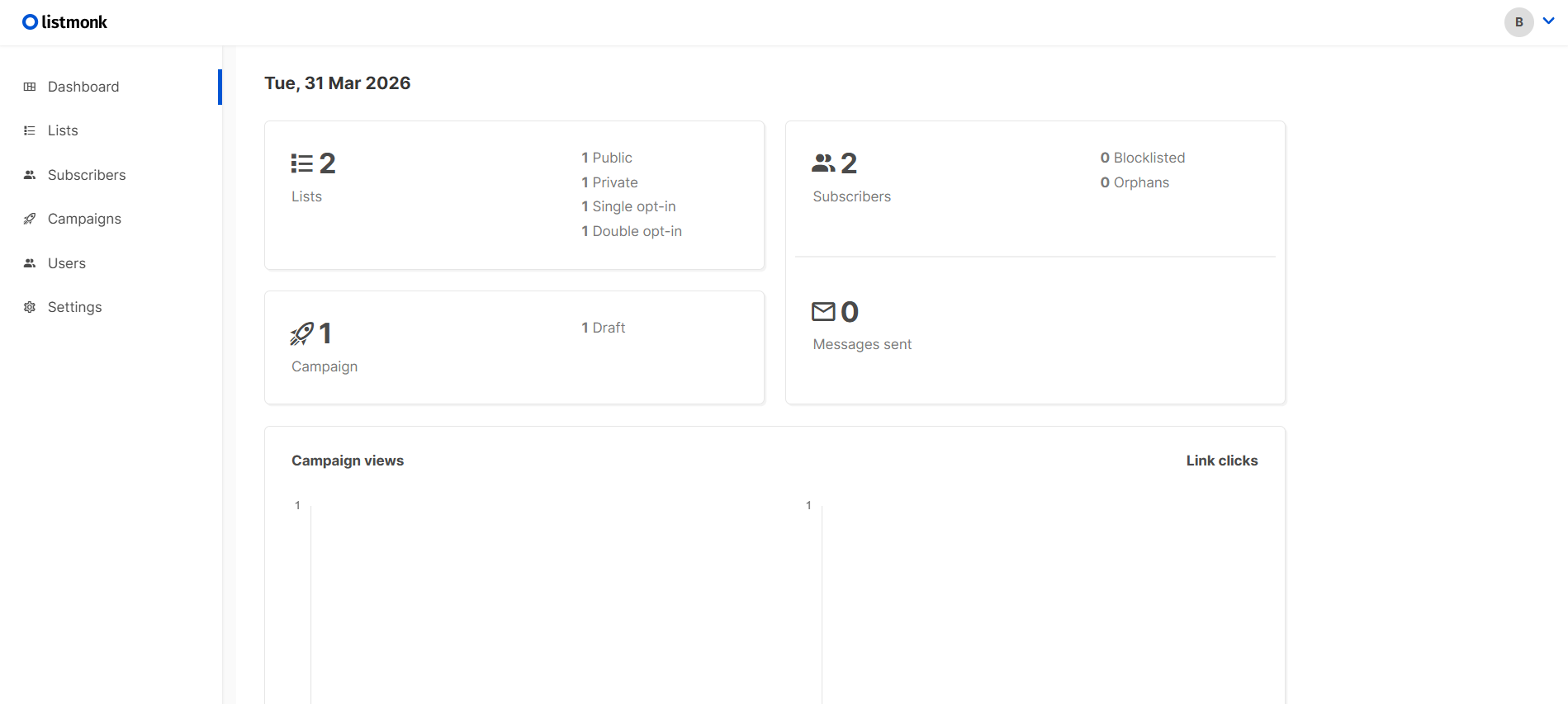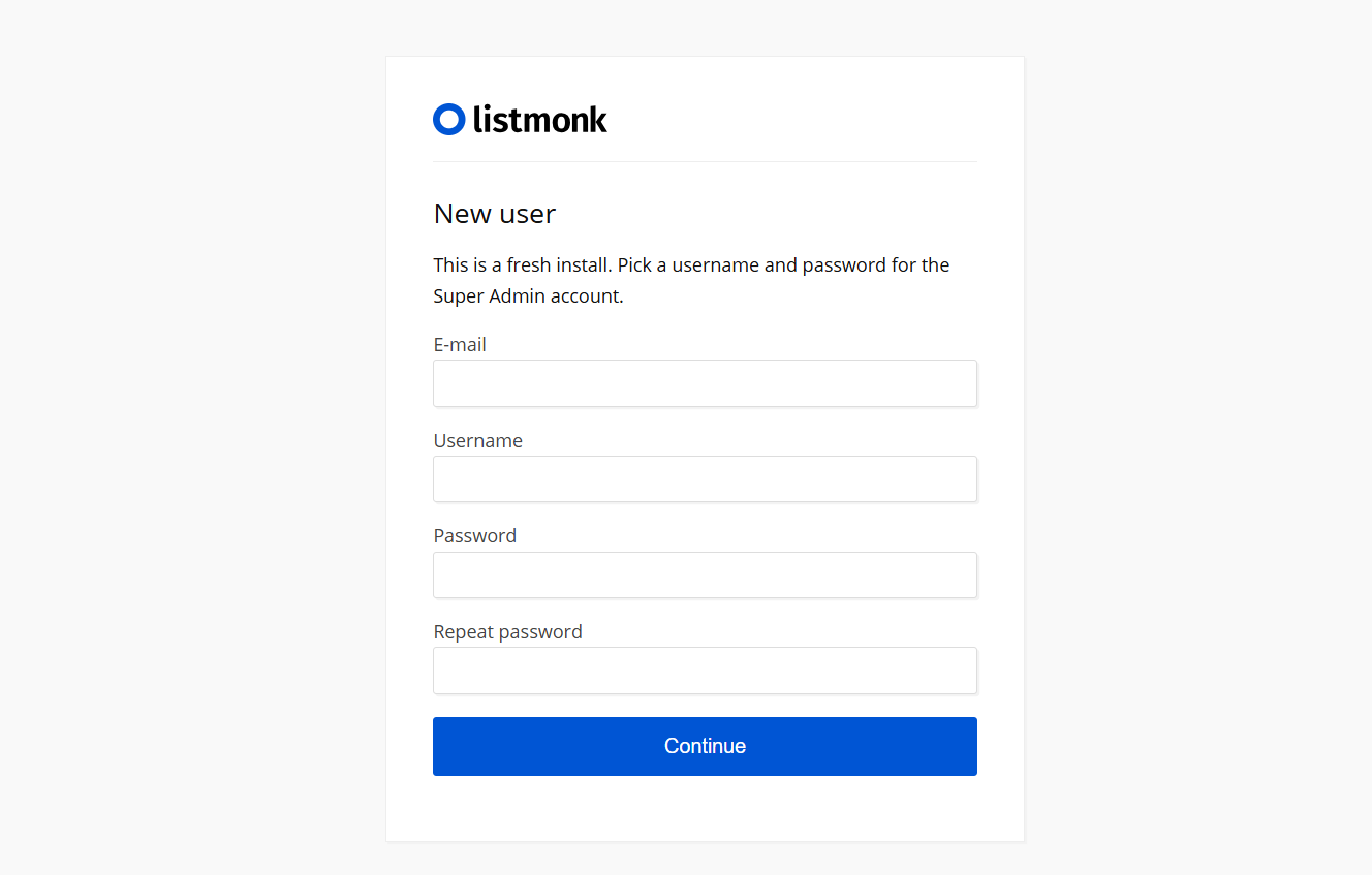 3. Then click continue button.You will navigate to the Listmonk dashboard.