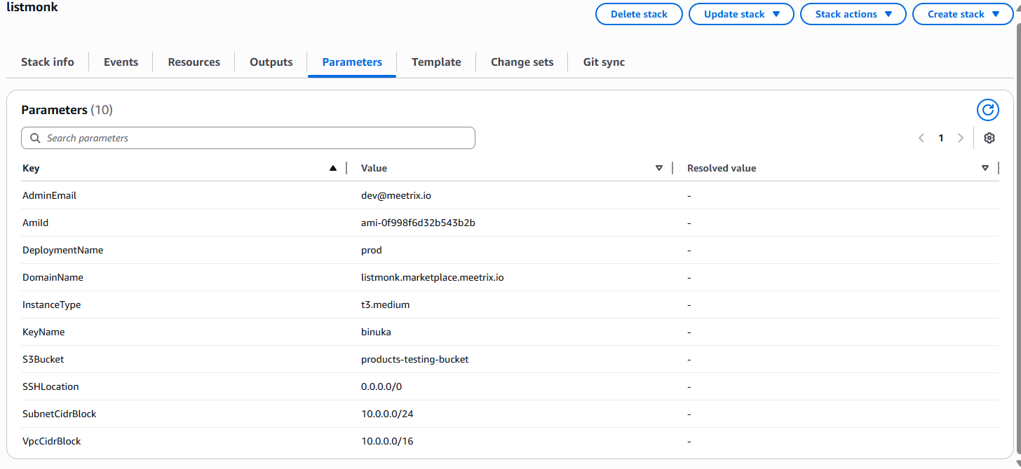 - Provide a public domain name for "DomainName". (Listmonk will automatically try to setup SSL based on provided domain name, if that domain hosted on Route53. Please make sure your domain name hosted on route53. If its unsuccessful then you have to setup SSL manually)