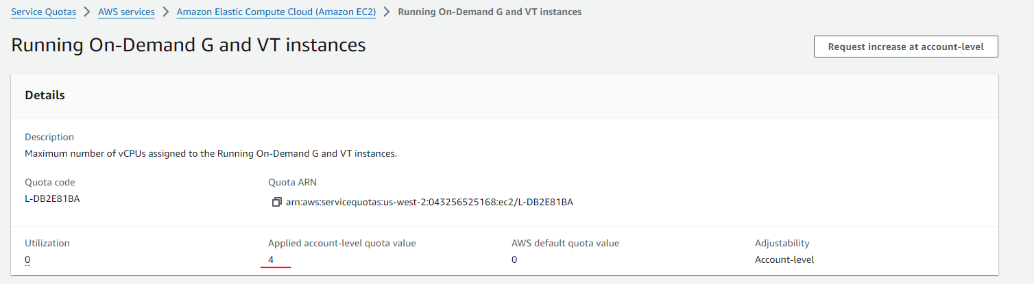 Now check the relevant number of vCPUs allocated for your selected instance type for the product. (In this example g4dn.xlarge instance is used which has 4vCPUs)